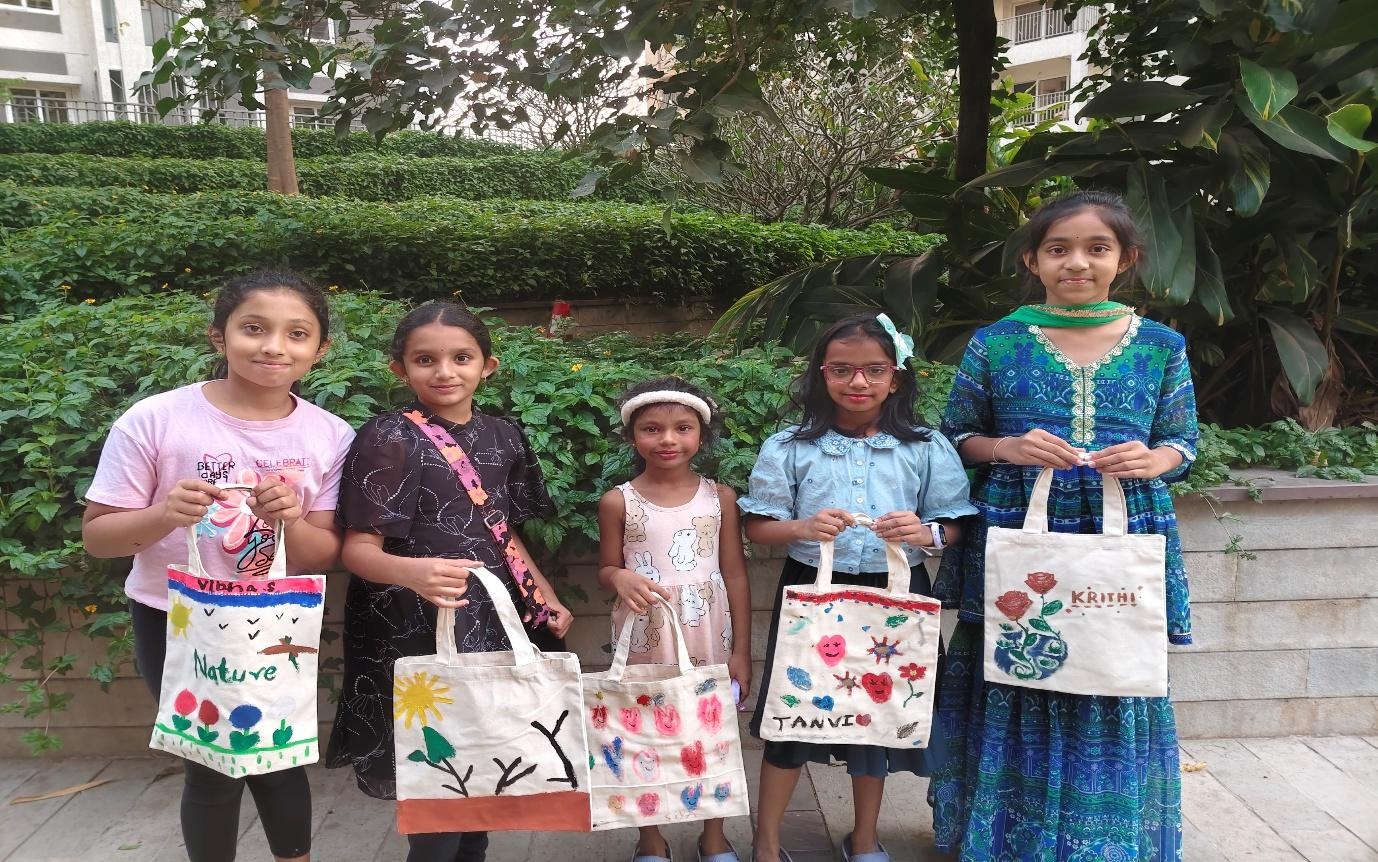 By painting their own reusable tote bags, children not only explored their creativity but also learned the importance of reducing plastic usage in everyday life. Each bag became a personal canvas, reflecting individuality while carrying a powerful message of sustainability.