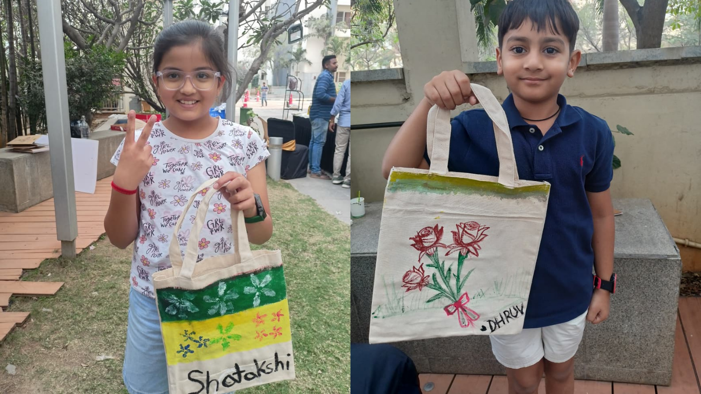 On 1st February, Organo Et School (OES) conducted an engaging and meaningful workshop at Ramky Towers, bringing together young participants for a hands-on learning experience. The highlight of the session was tote bag painting, where children explored their creativity while learning about the importance of reusing old items.