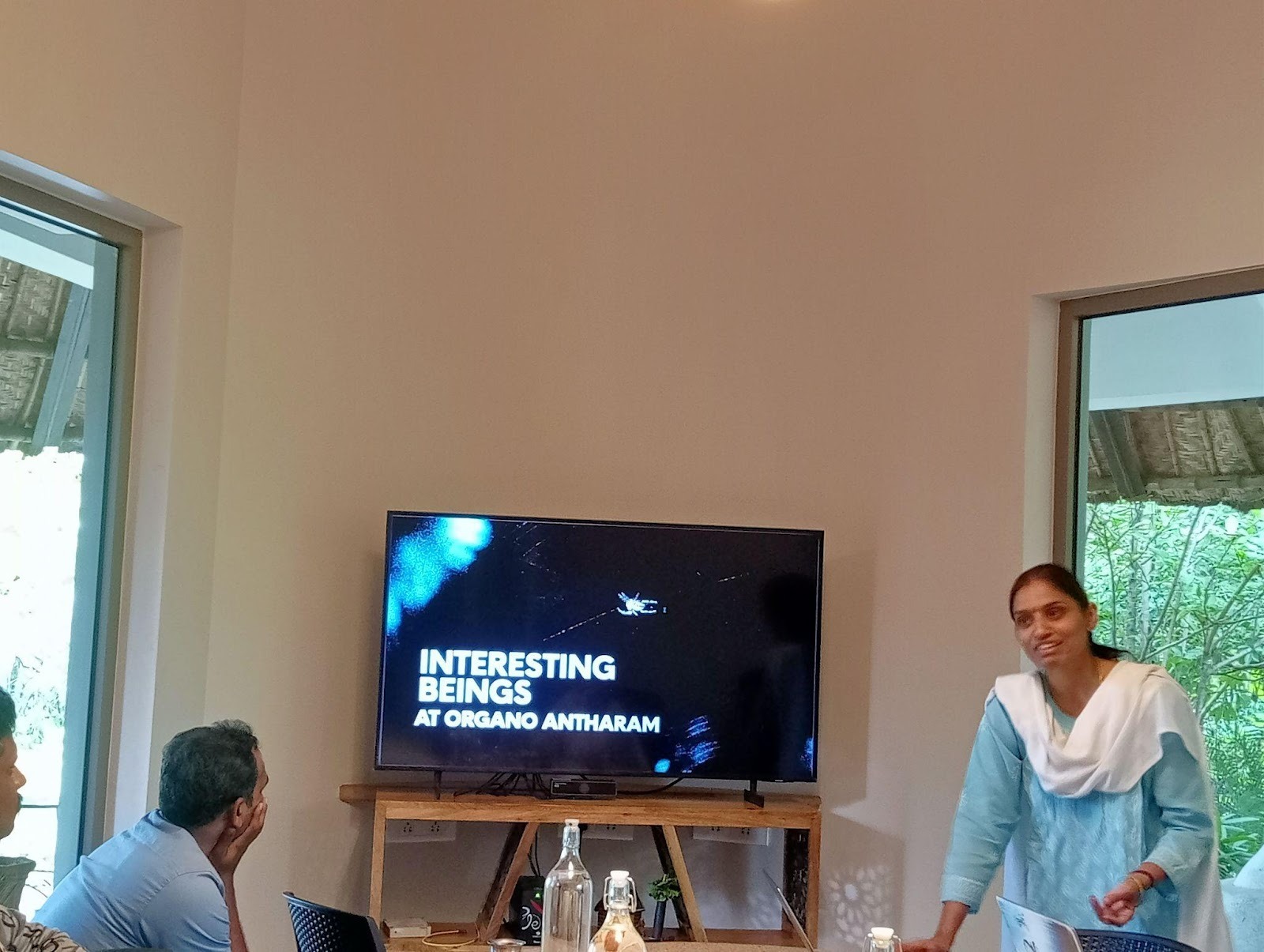Also present at the event were Dr. Parmesh and Mr. Mallikarjun from Falcon Resilient Infra Consultants, who had conducted a detailed biodiversity study at Organo Antharam. Their insights added scientific depth to the session, helping residents connect the data with their lived experience of the eco-habitat.