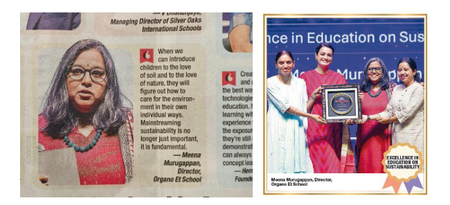 Ms. Meena Murugappan, Director of Organo Et School, was honored with the Excellence in Education Award for Sustainability. The Organo Et School team proudly accompanied Ms. Meena to the stage to receive the award, marking a memorable moment of shared achievement and inspiration.