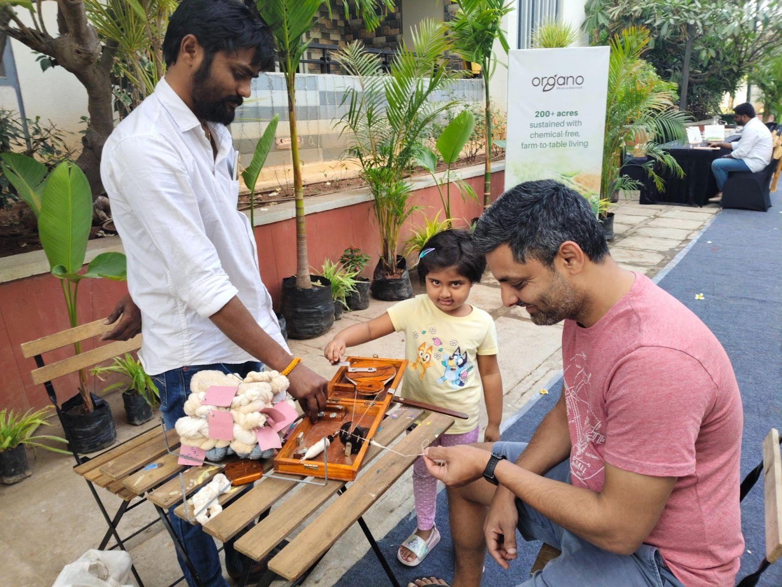The workshop began on 25th January with engaging sessions on yarn making and kitchen gardening. Participants were introduced to the traditional craft of transforming raw fibers into yarn, where both children and adults enthusiastically tried their hand at the process. This activity sparked curiosity and appreciation for handmade traditions.