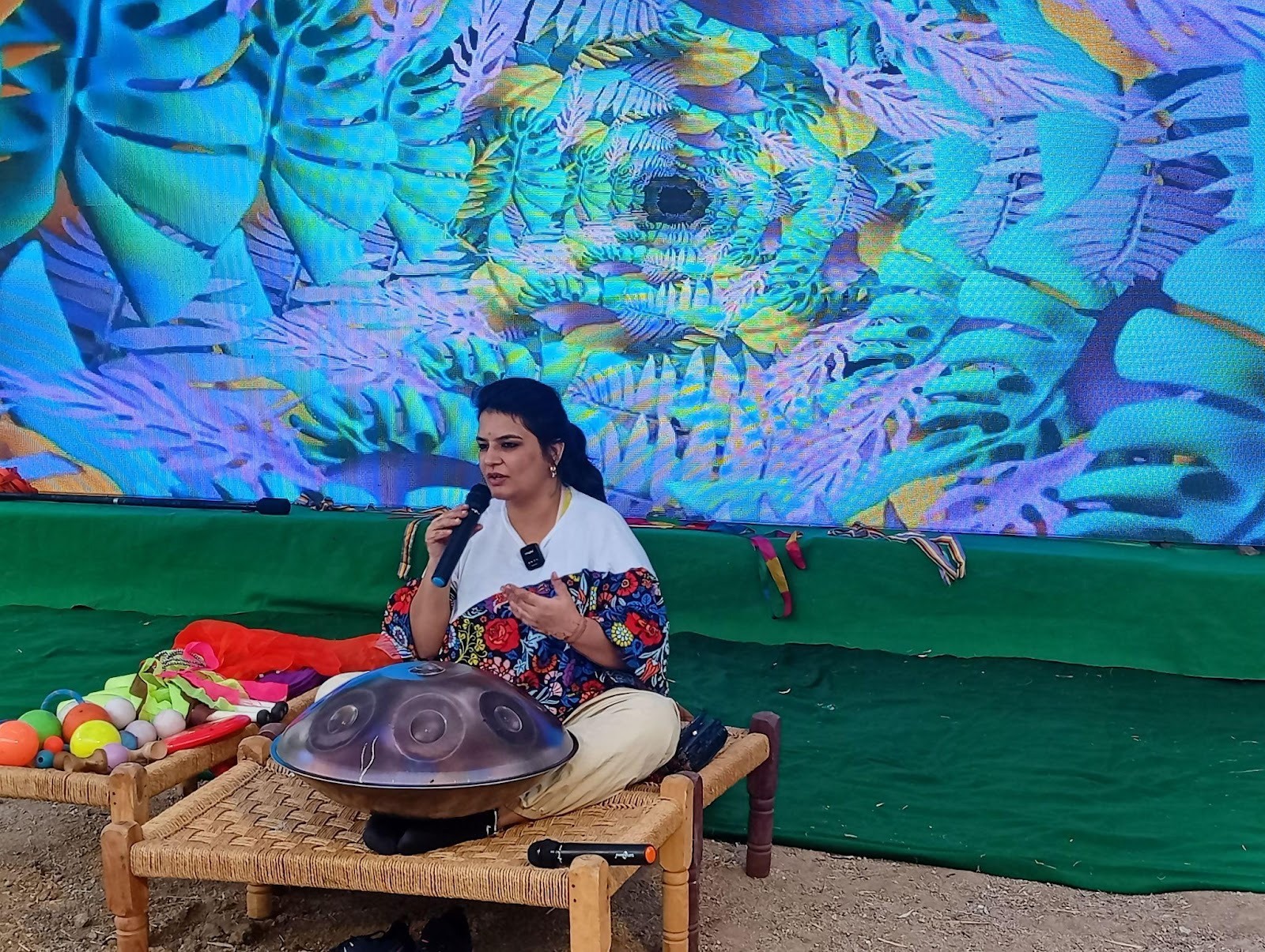 A gentle flow art session unfolded as the facilitator blended movement and rhythm into a calming, immersive experience.