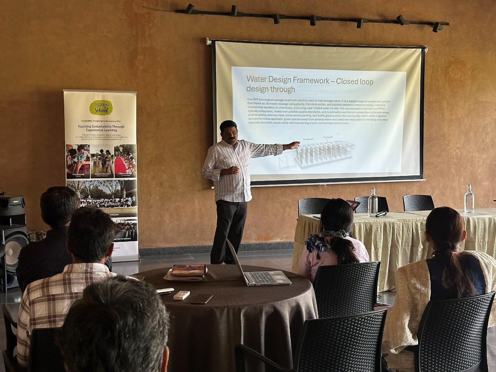 The session began with a welcome address by Mr. Rakesh Koti, Director, Organo Eco Habitats, who introduced the participants to the integrated water management philosophy of Organo Antharam. He explained that the project has been thoughtfully designed with the intent of achieving long-term water security for the community, guided by three key pillars: water balance, water security, and water quality. He further highlighted how a closed-loop water system has been implemented to minimise dependency on external sources and promote water conservation.